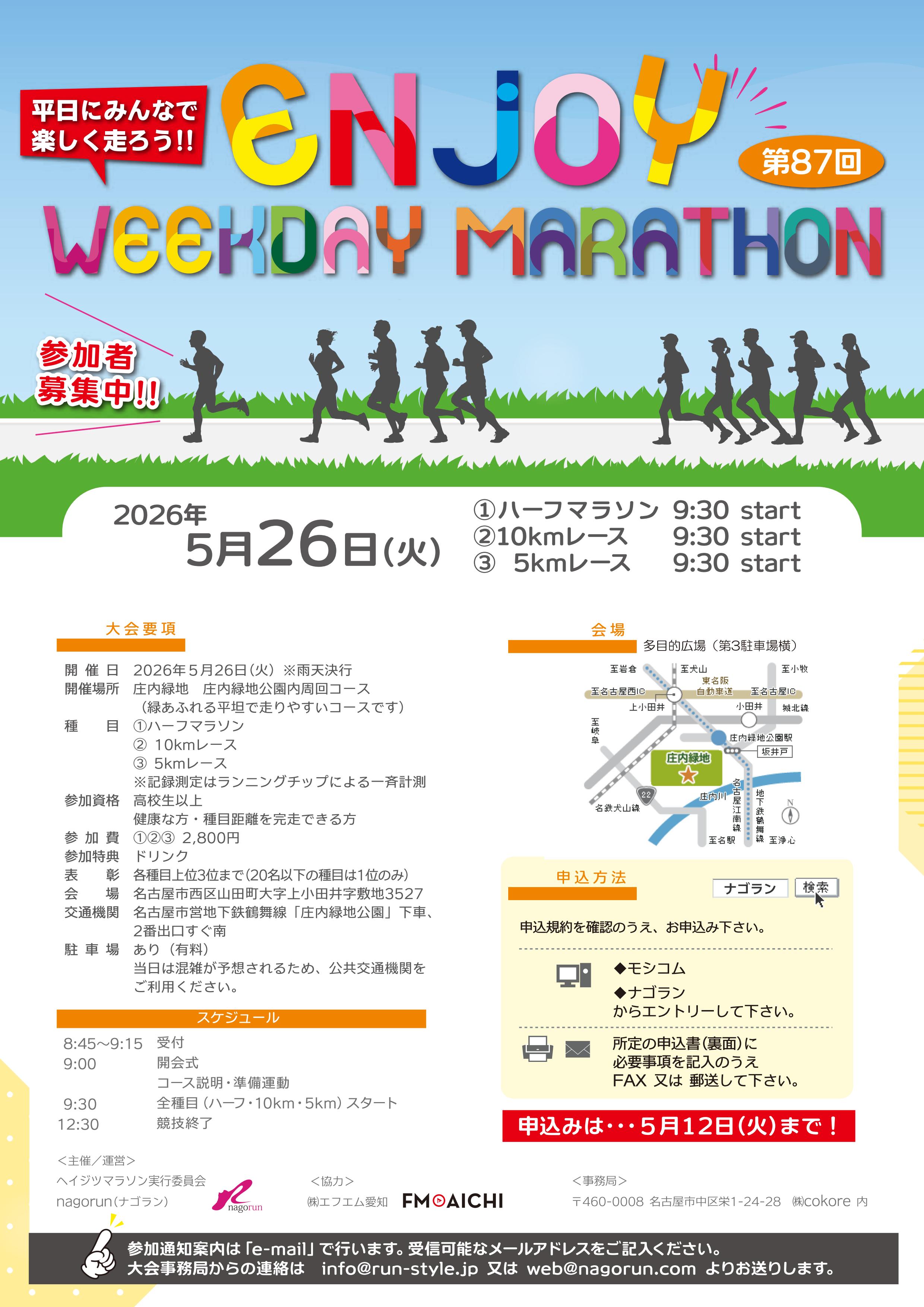 2025.12.27 1月4日開催 庄内緑地新春初マラソンの参加案内メールを送付しました。