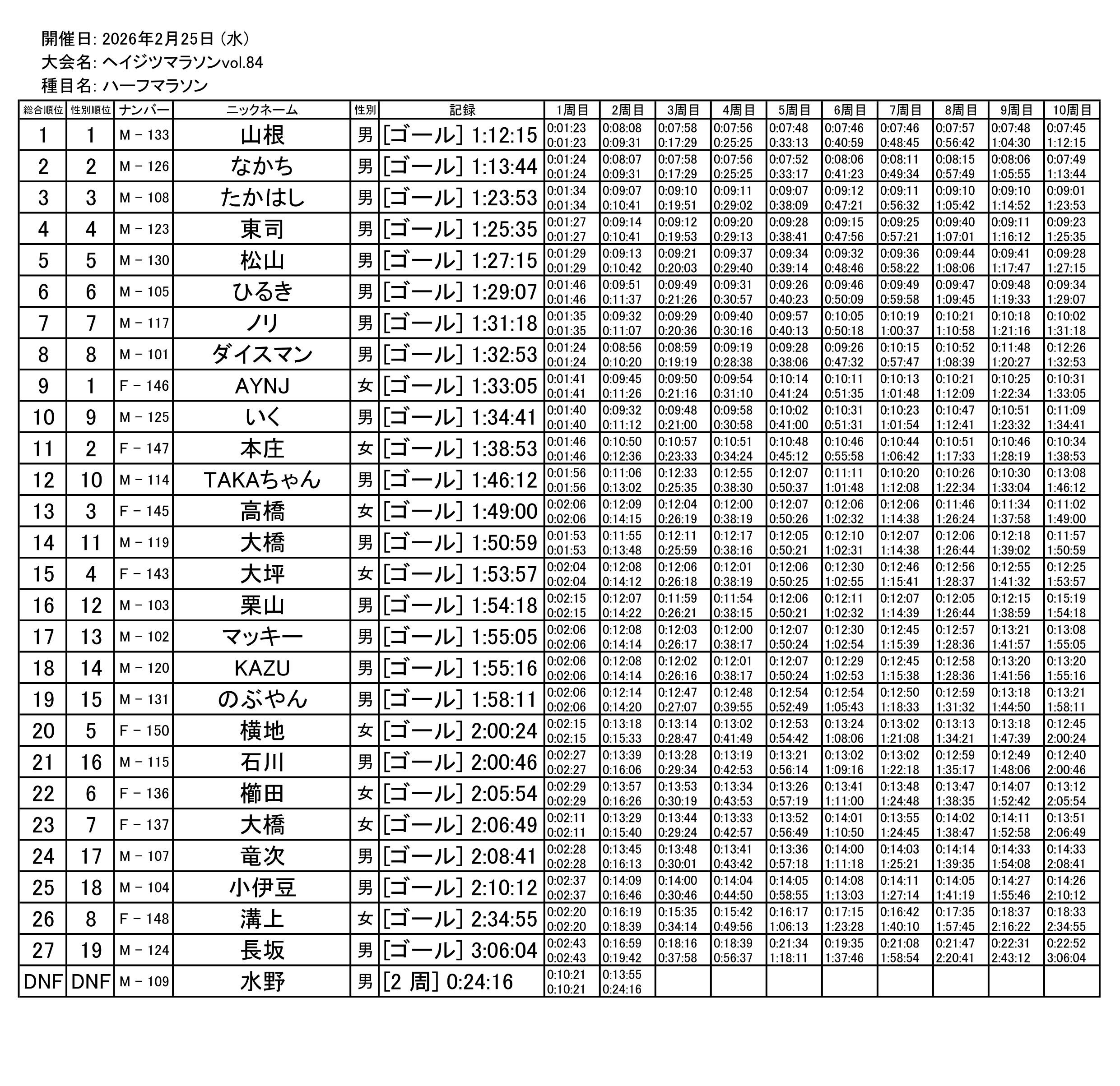 ヘイジツマラソンvol.84